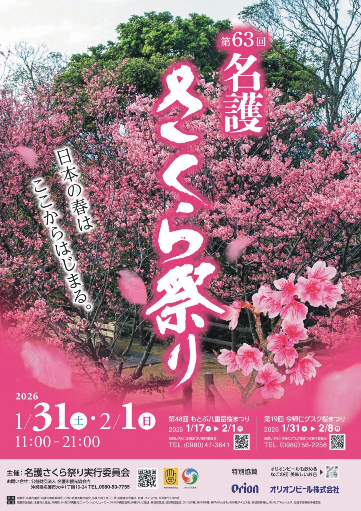 日本一早咲きの桜として知られる名護の桜を眺めながら、 ご家族やご友人とともに、ぜひお立ち寄りください。 皆様のお越しを心よりお待ちしております。